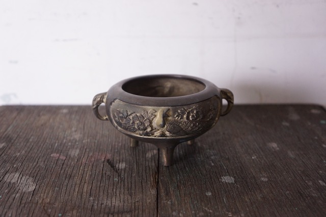 ボタニカルの味わいに深みを出す真鍮製の植木鉢です。 表裏に孔雀の伝統的な凹凸模様が付いた仕様です。 時間が経つにつれて着色と素材が馴染み、やわらかい風合いに変化いたします。 職人がひとつひとつ漆焼き付けで着色した後、 孔雀模様を際立たせる為、着色後再度削り出し、金ニスで塗る「金出し加工」をしています。 ひとつとして同じものはございません。 サイズ 幅 10.5㎝(口径8㎝) 高さ 6.3㎝ 深さ 4.5cm 素材:真鍮 仕上げ:漆焼き付け